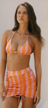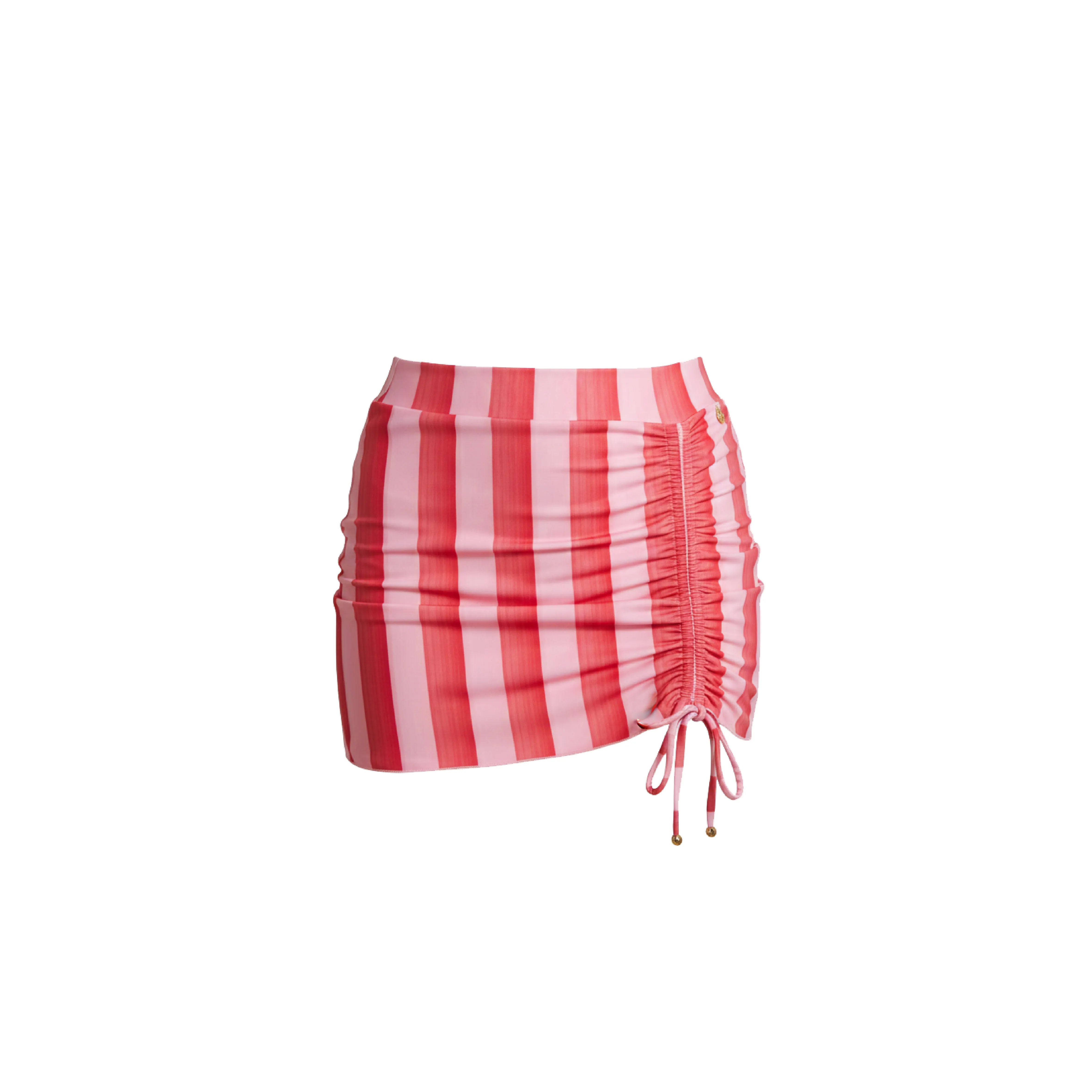 Falda corta de malla traslúcida con acabado fruncido. Su diseño ligero con amarre frontal la convierte en la salida de baño perfecta, ofreciendo un toque fresco y tropical. Ideal para combinar con cualquier top de la colección Sunset Sorbet.